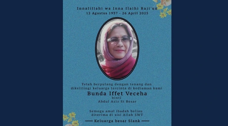 BERANDA.CO, Jakarta — Dunia musik Indonesia berduka. Bunda Iffet, sosok yang selama puluhan tahun menjadi ibu, manajer, sekaligus pelindung bagi grup musik legendaris Slank, meninggal dunia pada Sabtu malam, 26 April 2025, pukul 22.42 WIB di usia 87 tahun.