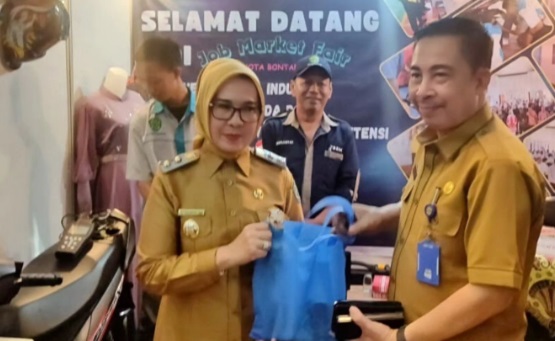 Wakil Wali Kota Bontang, Najirah (kiri) saat mengunjungi Job Market Fair yang digelar BLKI Bontang beberapa waktu lalu, bersama Ketua BLKI Bontang Ismid Rizal (kanan).
