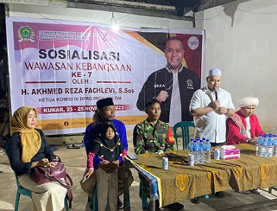 BERANDA.CO, Kutai Kartanegara – Ketua Komisi IV DPRD Kalimantan Timur (Kaltim), Akhmed Reza Fachlevi, melakukan Sosialisasi Wawasan Kebangsaan (Wasbang) di RT 1 Desa Bukit Raya, Kecamatan Samboja, Kabupaten Kutai Kartanegara.